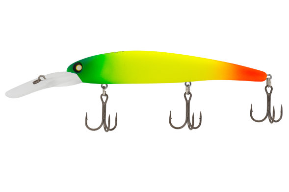 Если есть универсальный воблер, то это он. Это именно та приманка которая должна быть в коробке у любого охотника за хищником, будь то начинающий или уже опытный рыбак. При чём данная приманка может использоваться как для ловли троллингом (на дорожку), так и для ловли в заброс. Его заявленные характеристики заглубления при троллинге (дорожке) 7-9 метров, но это не значит что вы не сможете его провести и по 4-5. Вам нужно просто уменьшить отпуск или увеличить толщину используемой плетёнки (лески) и вуаля. Простая и вместе с тем уловистая форма обеспечила ему огромную популярность, а цветовая палитра для данной модели столь обширна, что позволит найти «свой» цвет для самого взыскательного рыбака.